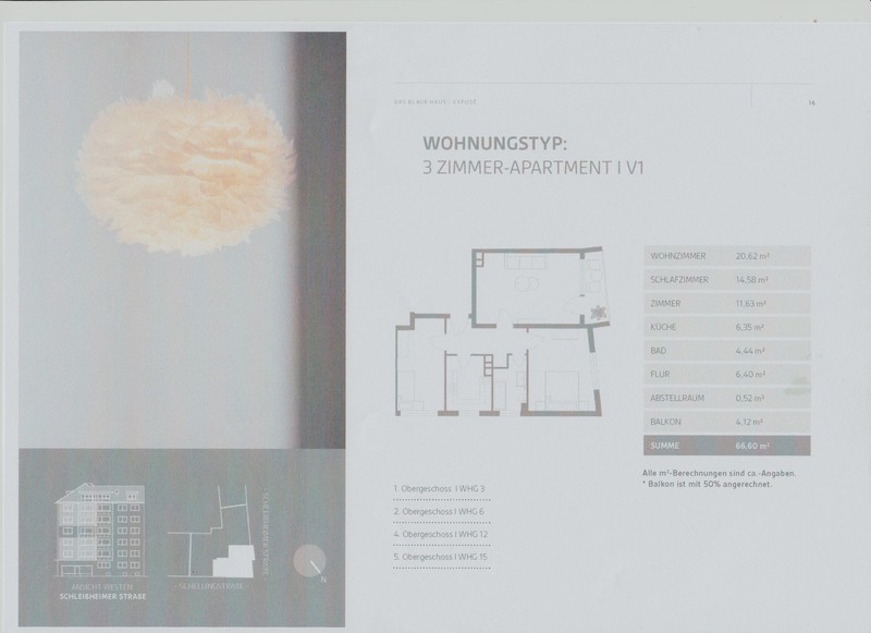 Als Kapitalanlage steht noch eine weitere 3-Zi. Wohnung im selben Gebäude Schellingstraße im 3. O.G. – 64 qm und Westbalkon zur Verfügung.